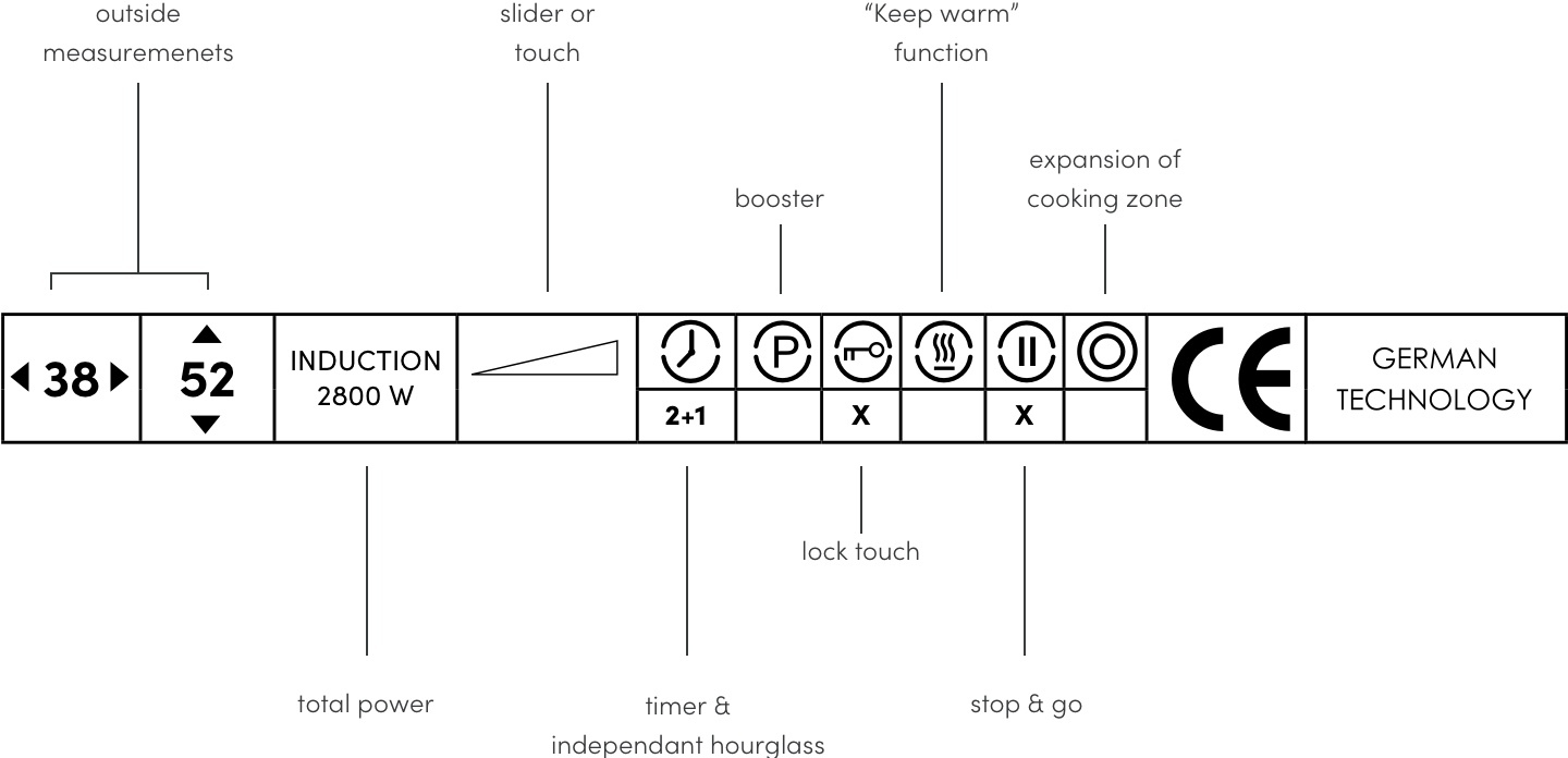 slider touch control with direct access to each of 10 heating levels: 0-9 / cleaning level